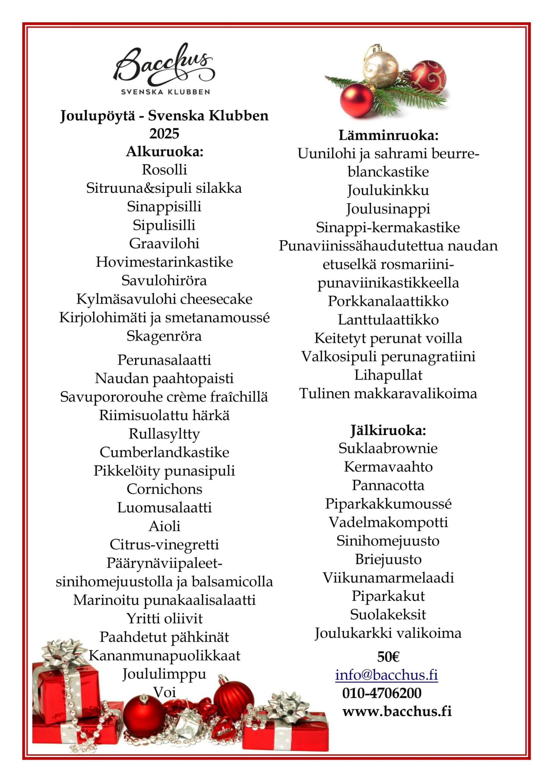 Varaa jo tänään! info@bacchus.fi, 010-4706200